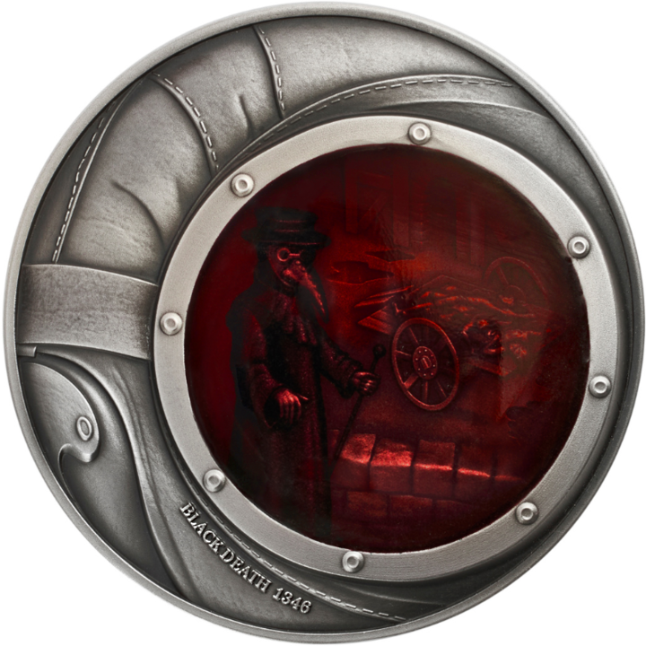 Niue zilveren munt "Zwarte Dood - De Pest. Human Tragedies" 2023, 62,2 gram puur zilver (0,999 proof)