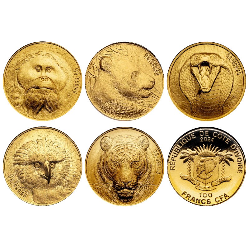 Republiek Ivoorkust: gouden munten Dieren Azië 2024 set 5 g
